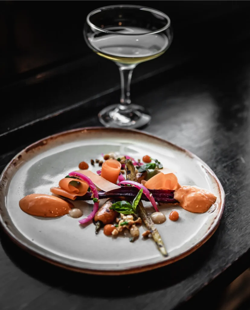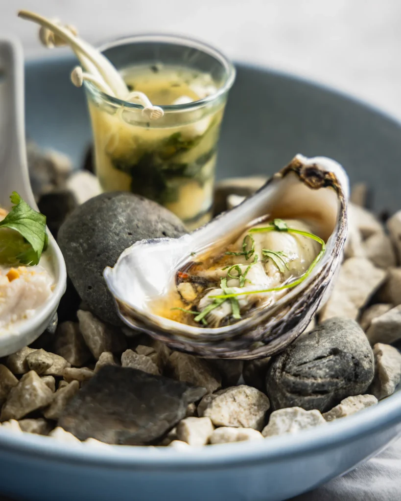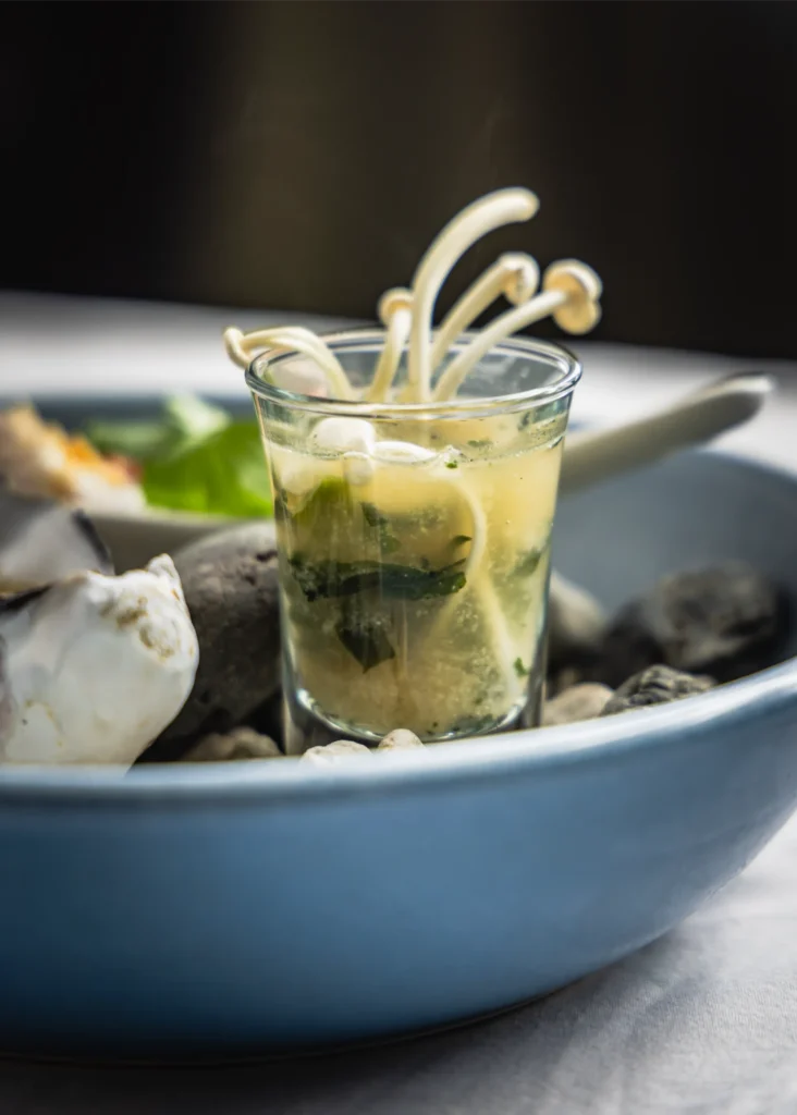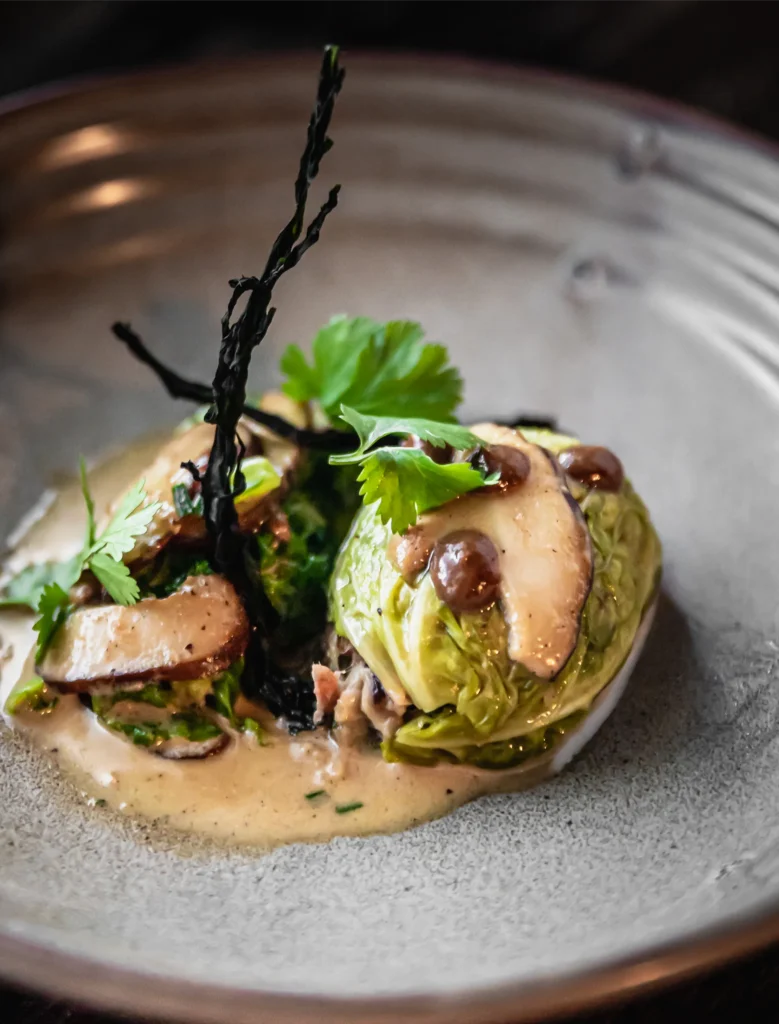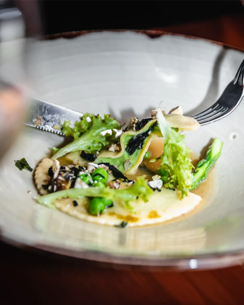 Asparagus Raviolo | Oyster Mushroom | Seaweed Pearls