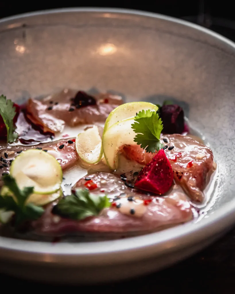 Raw Bluenose | Sichuan Pickled Apple | Beets | Sesame