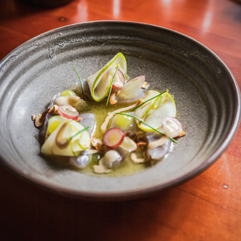 Duck Braised Kumara | Walnut | Apple | Smoked Kina